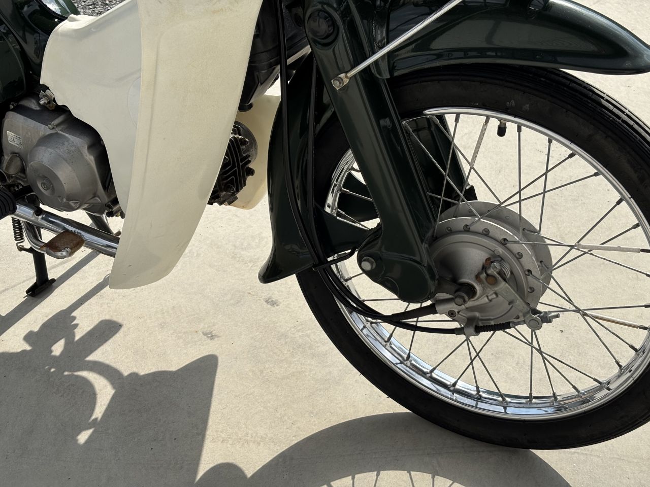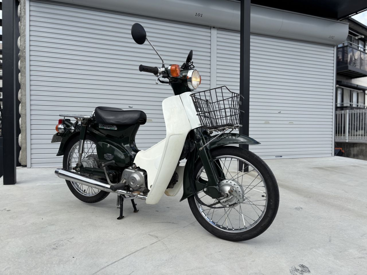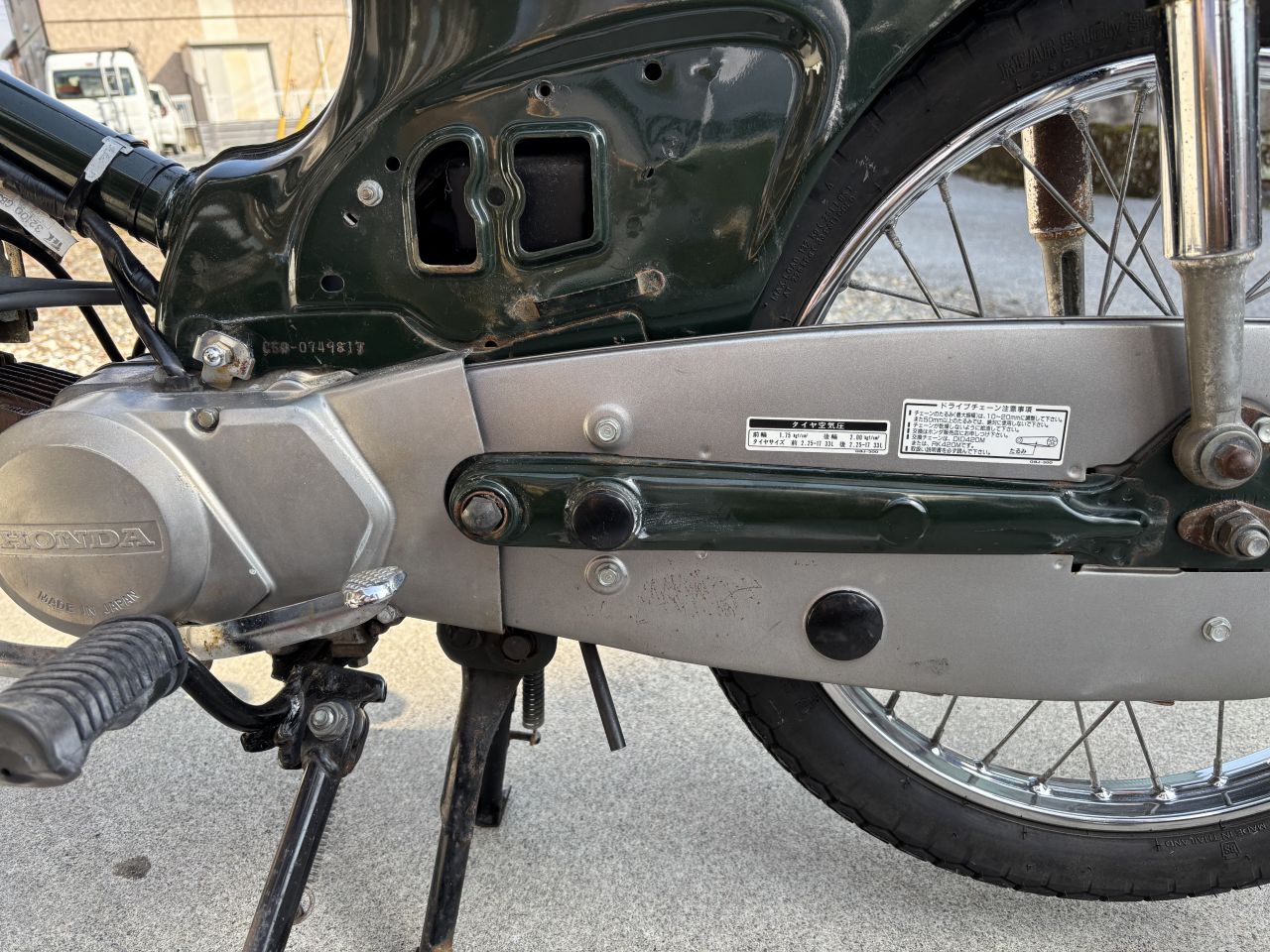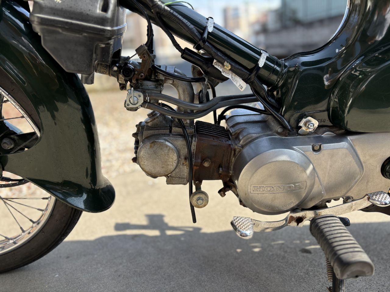 大学の寮から片道2km程度ですが、息子の大学通学に、雨の日も風の日も相棒となって走ってくれました。2年生の頃には、私から110を奪い取り乗っていました。なのでこちらのC50は以降乗っておらず、私のガレージで保管していた物になります。