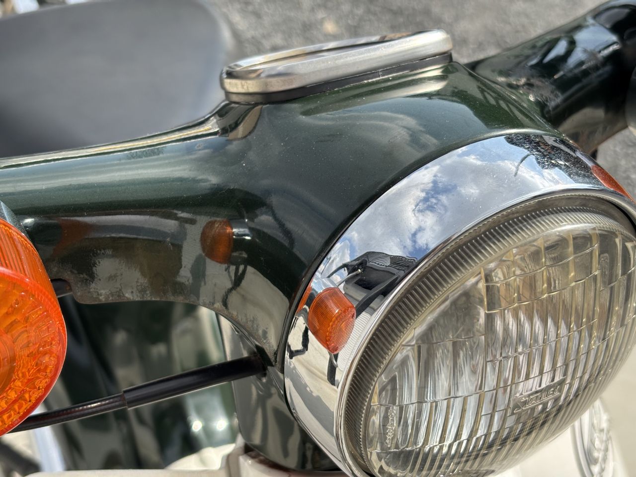 程よいエイジングが雰囲気有ります。30年前の個体としては綺麗な方ですね。少走行で良好な個体です。もちろん煙吐きもありません。チョーク引かずに軽~いキックで1発!というより、ただ踏み下ろしただけでかかります。長い間乗らなかった場合はその限りではありません。