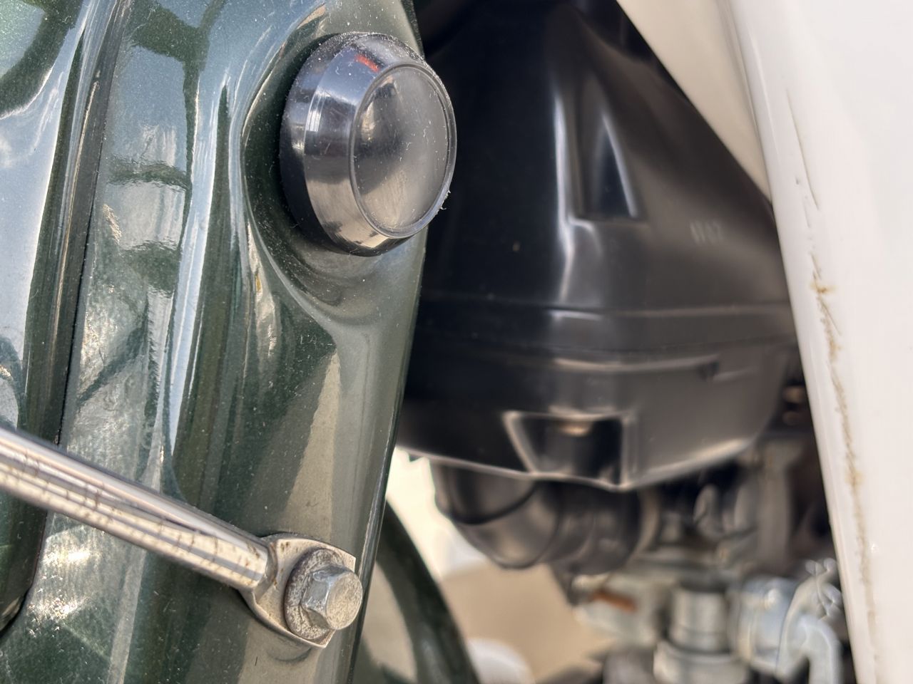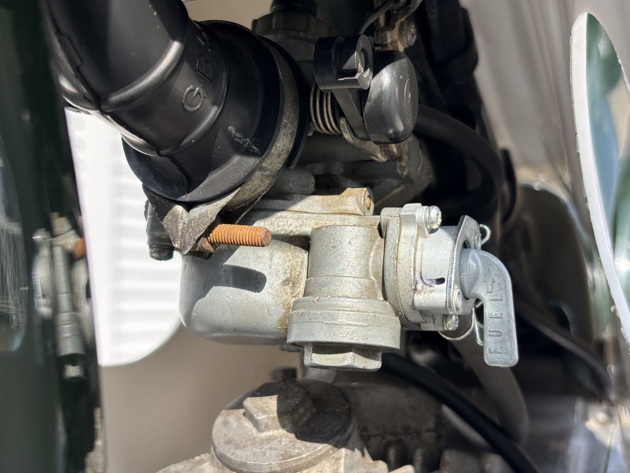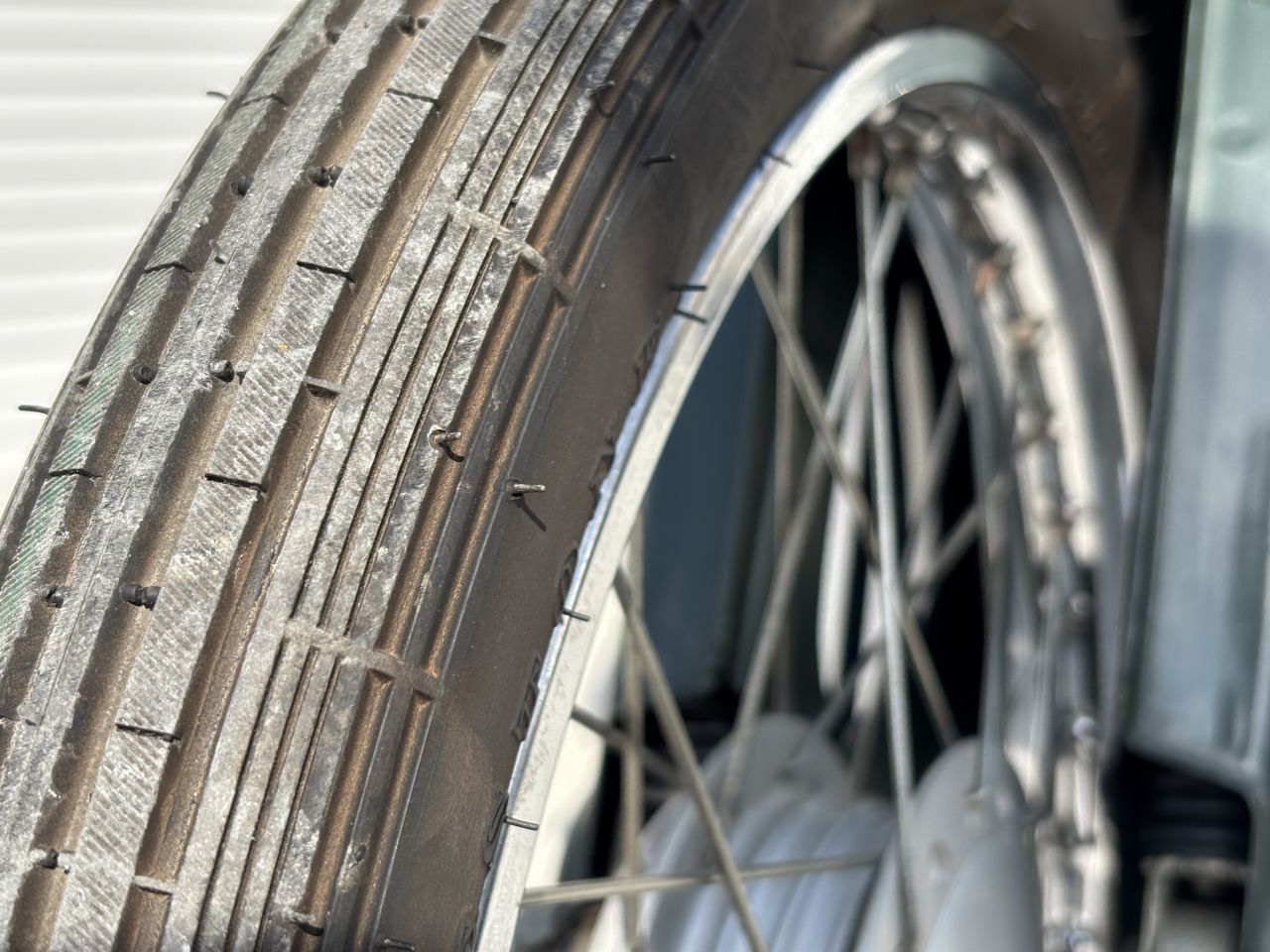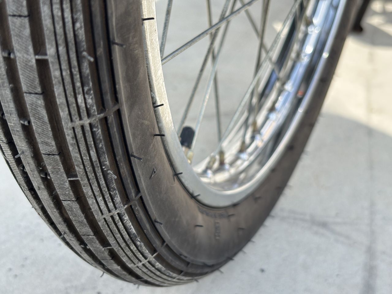 この個体は7年くらい前に私が出入りしている業者にたまたま入庫したものを入手しました。当方でタイヤ前後、チューブやリムバンドも合わせて交換。キャブやタンクの清掃、コック交換など一通りメンテナンスを施し、ガレージ内保管しておりました。
