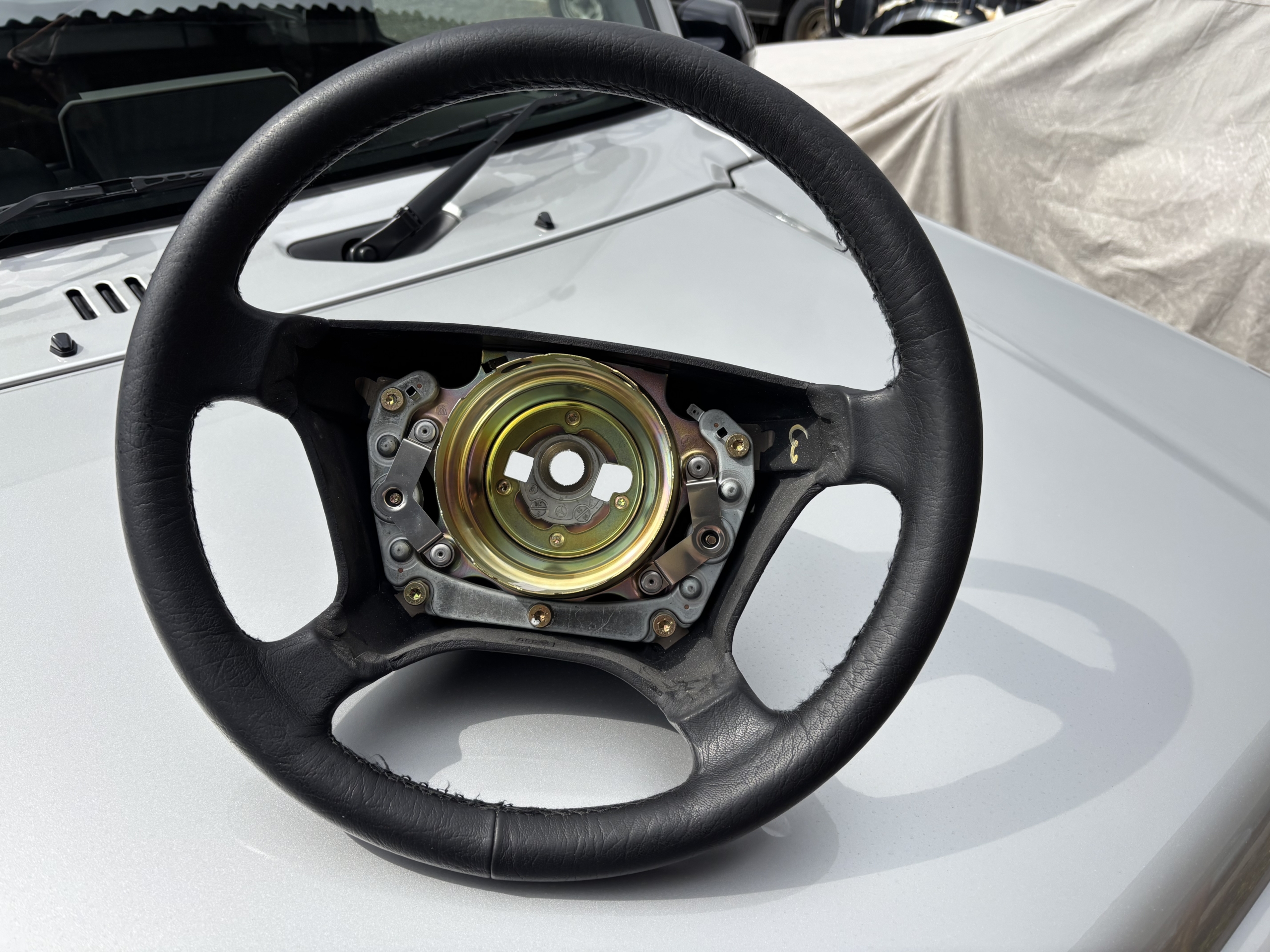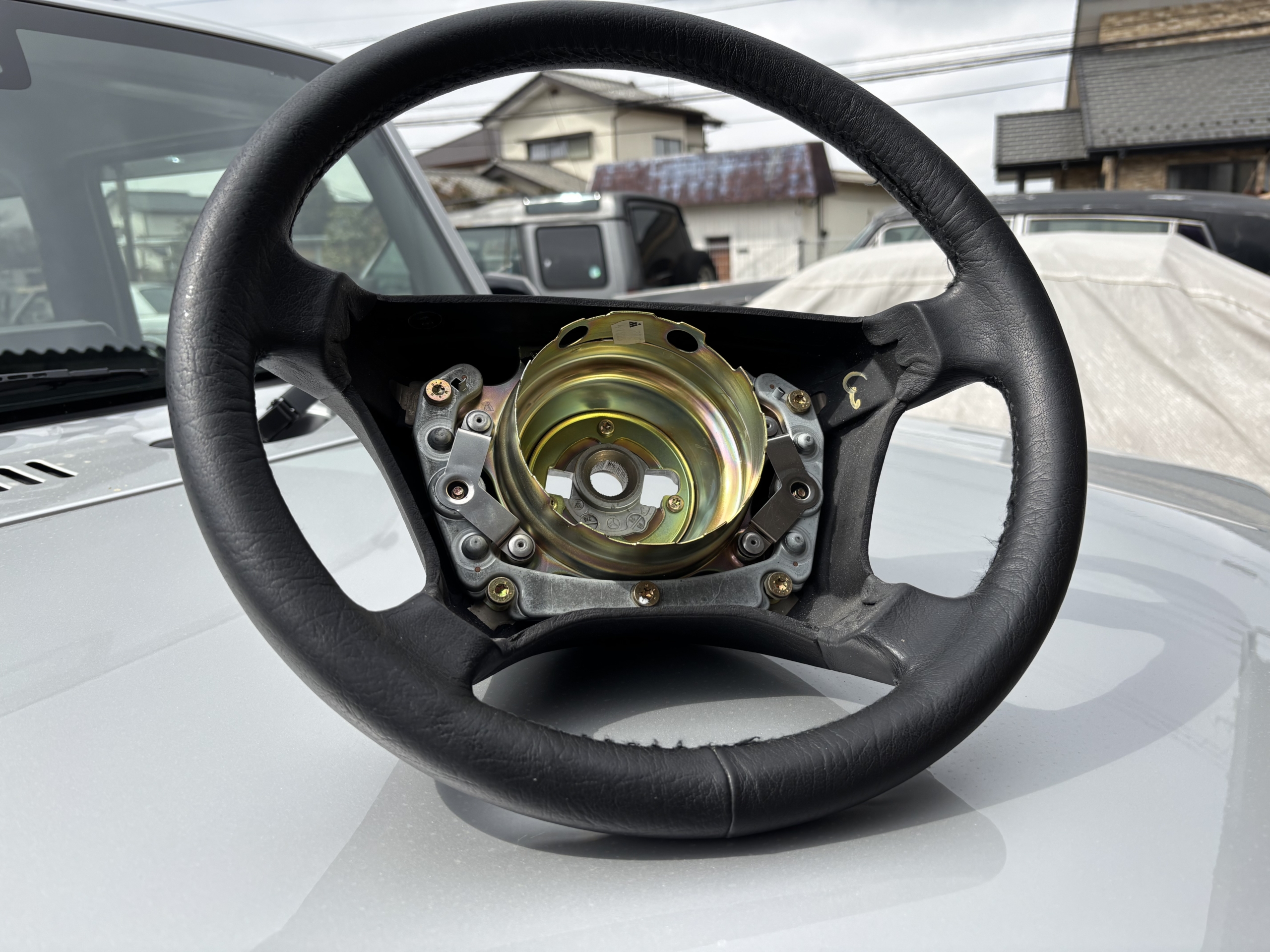 新車納車時にウッドステアリングへ交換した際に取り外し、保管していた物です。