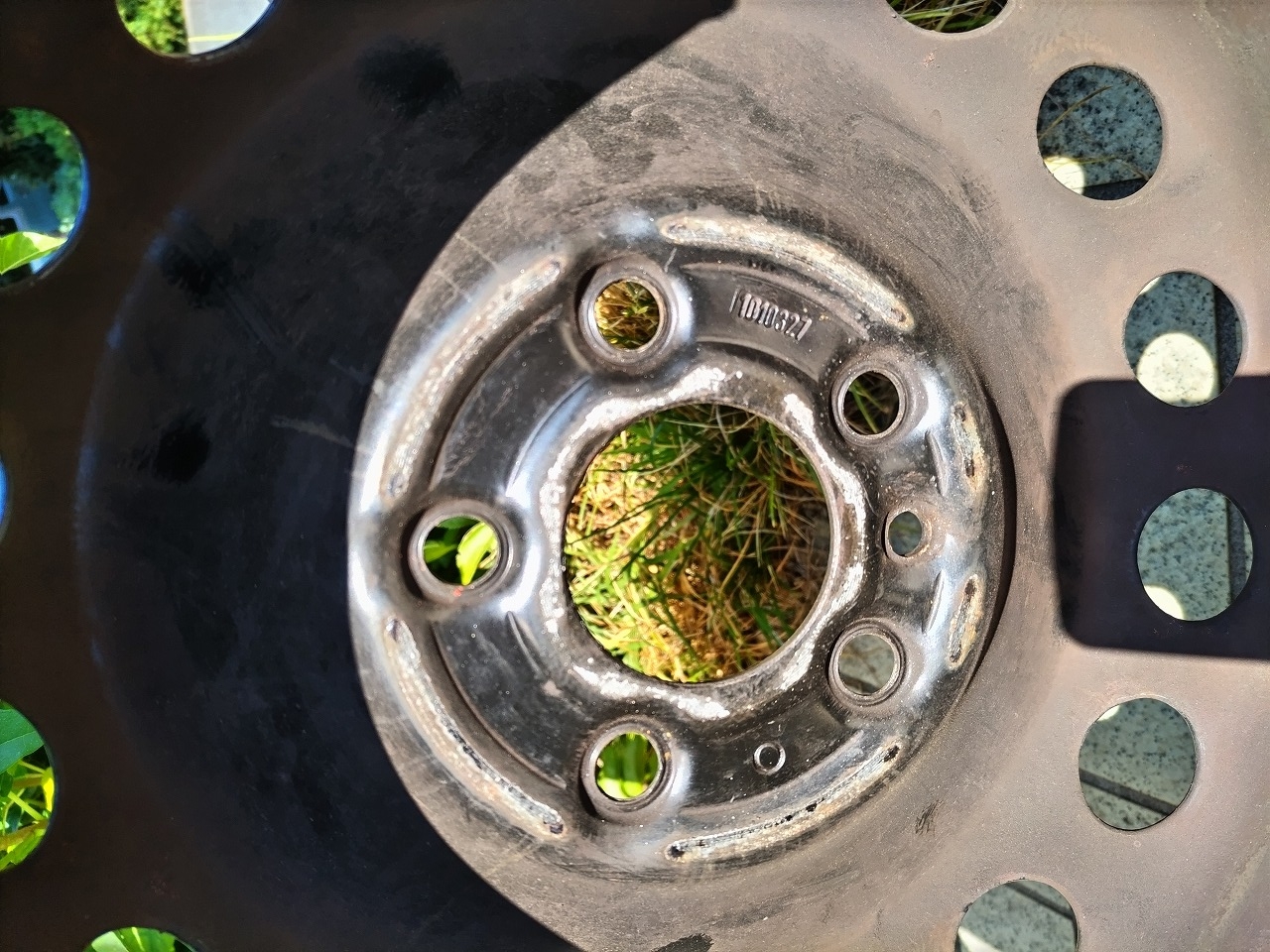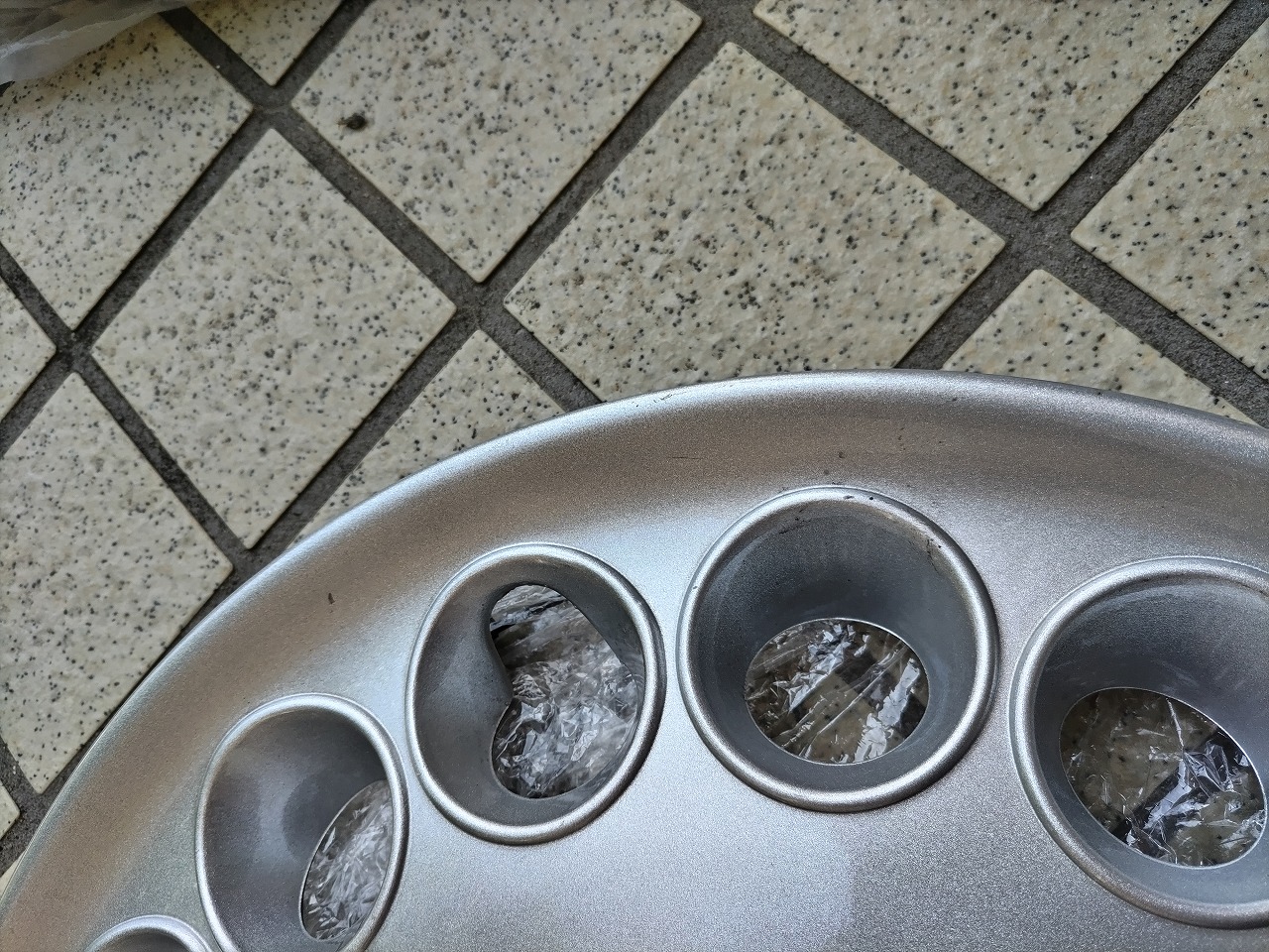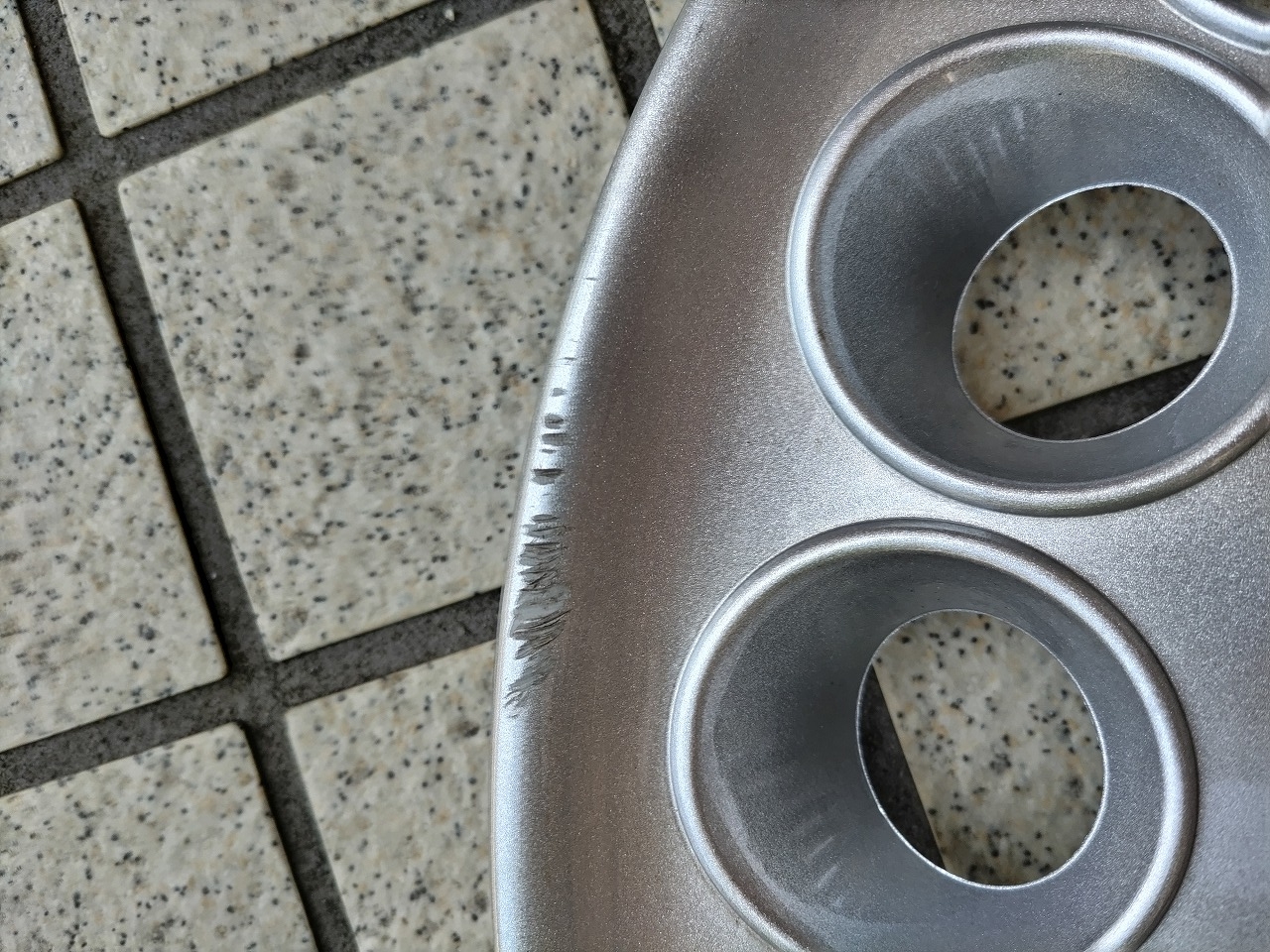 ホイールキャップにはガリ傷や塗装の劣化が見受けられます。