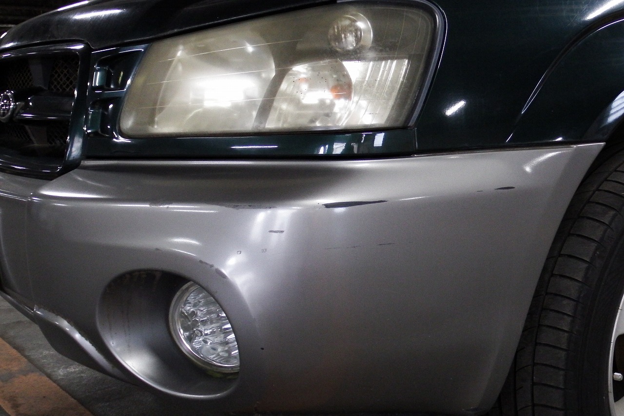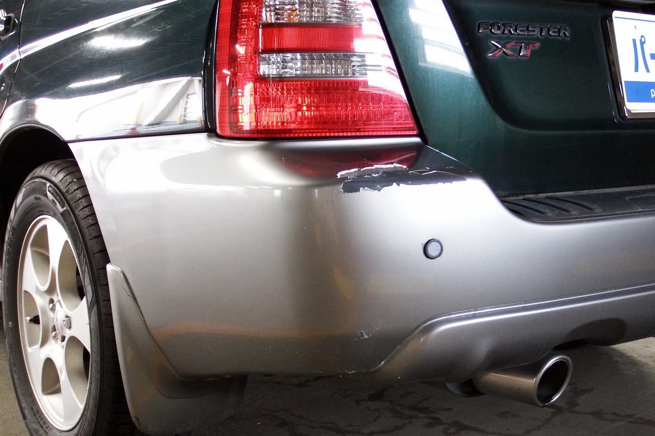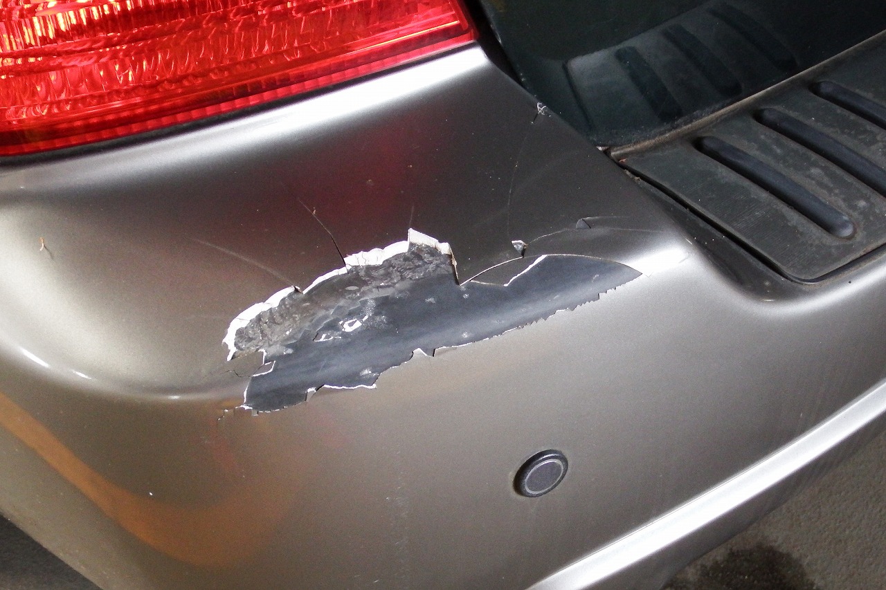 リアバンパー右側の塗装は大きく剥がれています。